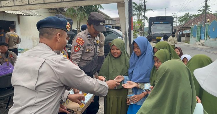 Kapolres Lumajang, AKBP Alex Sandy Siregar melalui Kasubsi Pidm Si Humas, Ipda Untoro menjelaskan bahwa pembagian snack dan susu ini bertujuan untuk memberikan keceriaan sekaligus memastikan kebutuhan gizi anak-anak tetap terpenuhi selama masa darurat.